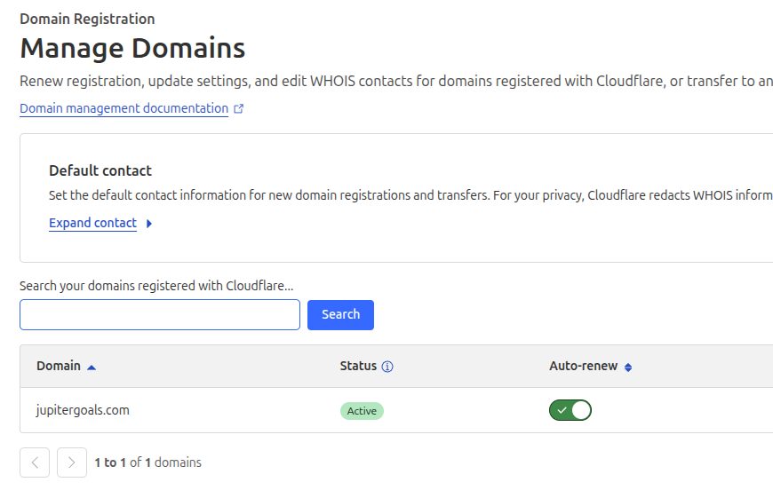 - Go to the Cloudflare Registrar page: https://www.cloudflare.com/products/registrar/ and search for your domain.